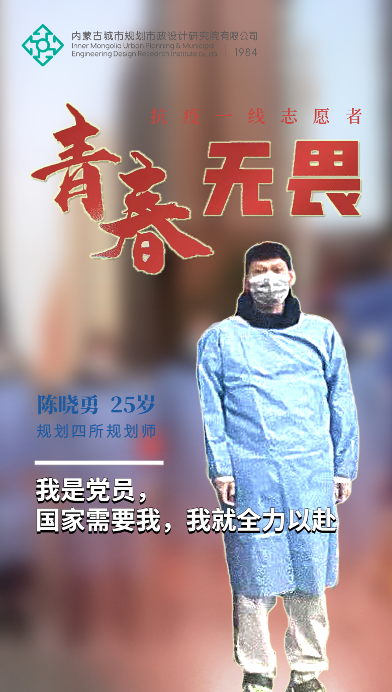“我是黨員,國家需要我,我就全力以赴。”今年25歲的共產(chǎn)黨員陳曉勇,是內(nèi)蒙古城市規(guī)劃市政設(shè)計研究院規(guī)劃四所的規(guī)劃師。他一直奮戰(zhàn)在抗“疫”第一線,用實際行動踐行入黨誓言。