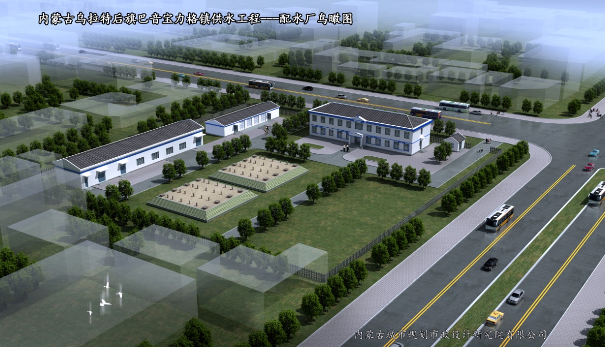 《烏拉特后旗巴音寶力格鎮(zhèn)供水工程初步設(shè)計(jì)、施工圖》2015年——該項(xiàng)目主要工程內(nèi)容為(1)水源地:新增11眼水源井及配套設(shè)備,新建4610米連井管線,管徑DN200mm-400mm;(2)配水廠:新建兩座1500m3清水池、二級(jí)加壓泵房、加氯間、配電間、綜合辦公樓、機(jī)修間及廠區(qū)配套工程;(3)輸配水管線:新建31900米輸水管線,2730米配水管線,管徑DN400mm。項(xiàng)目總投資為5312萬(wàn)元。