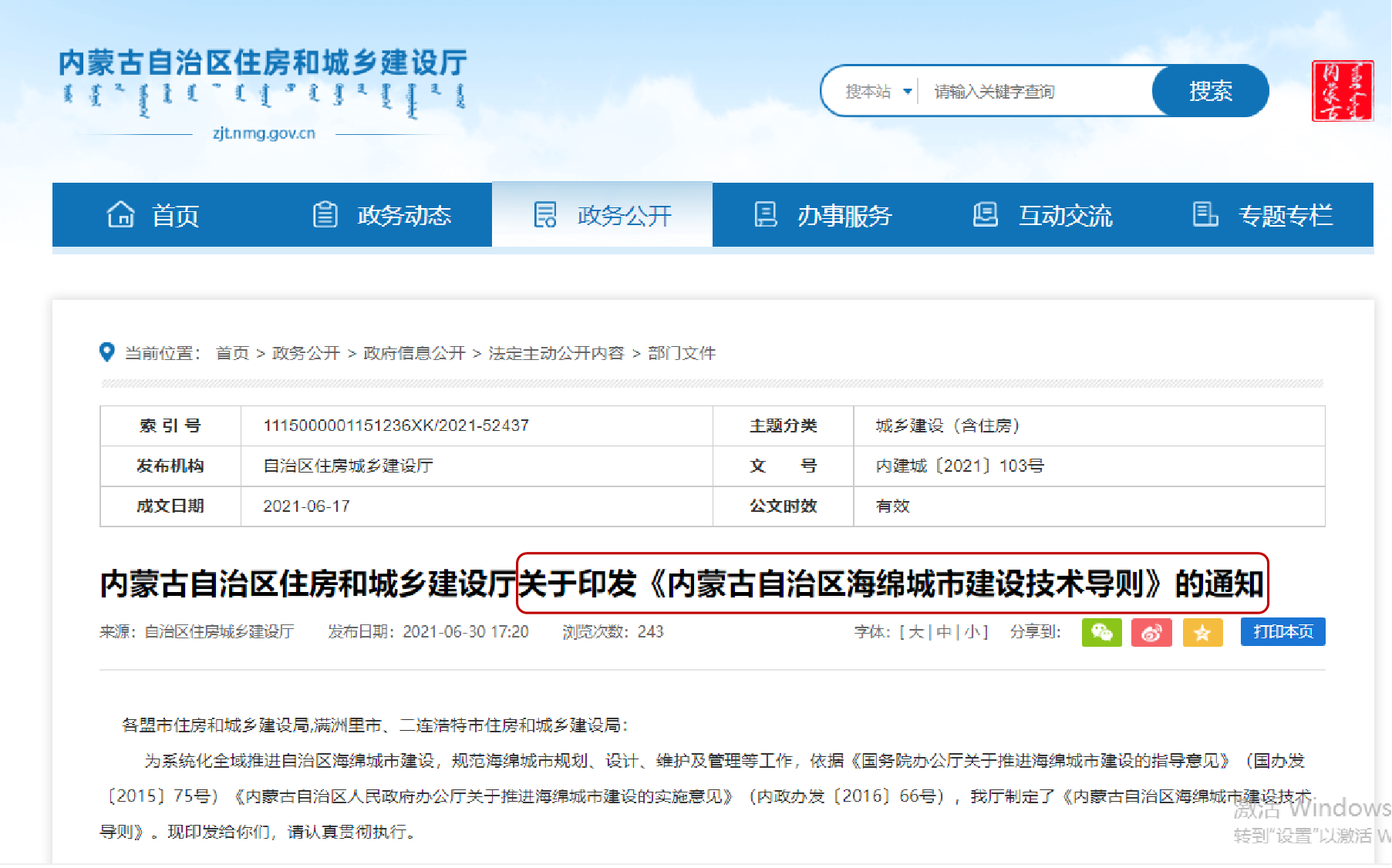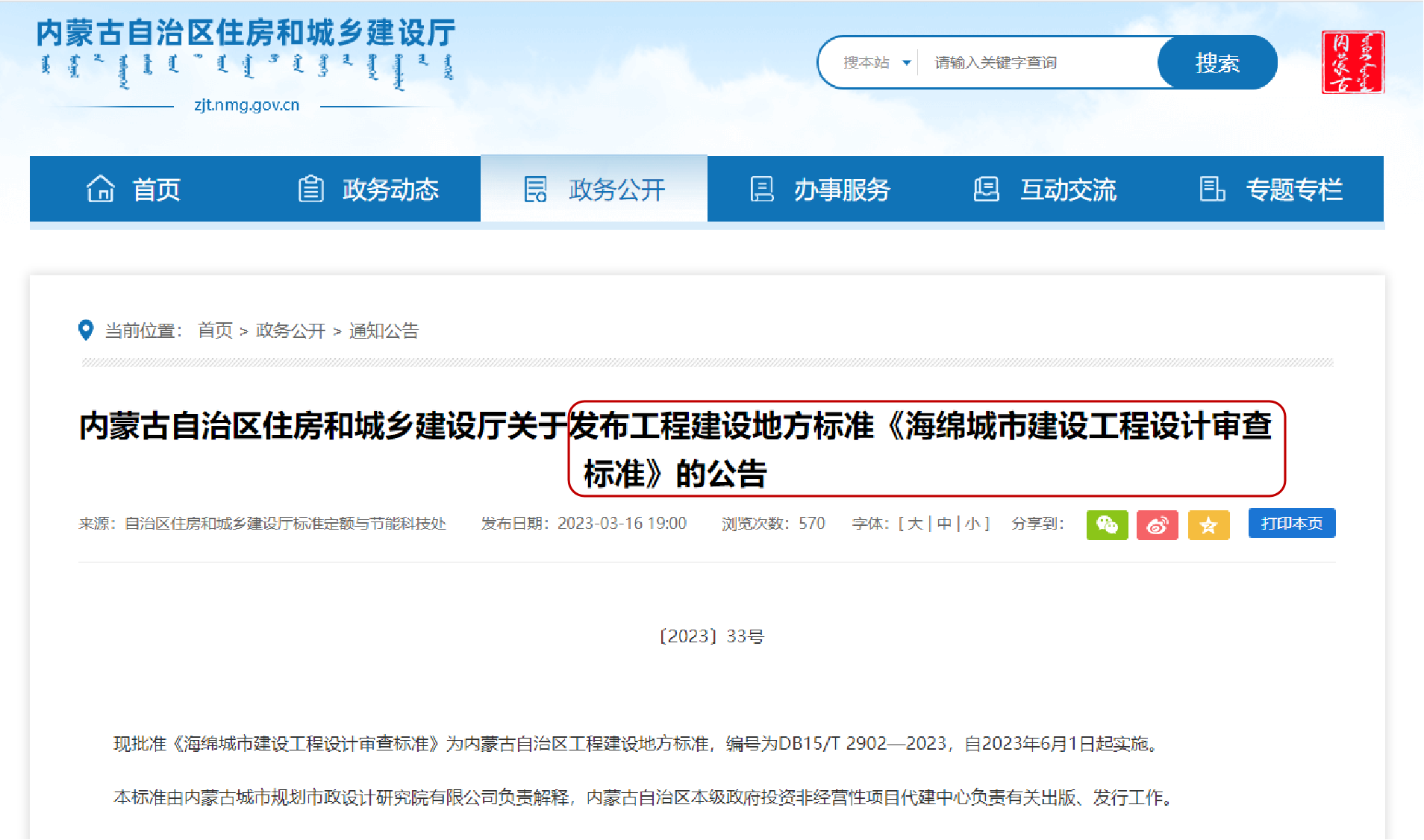 我院主編的地方標(biāo)準(zhǔn)《內(nèi)蒙古自治區(qū)海綿城市建設(shè)工程設(shè)計(jì)審查標(biāo)準(zhǔn)》近日印發(fā)